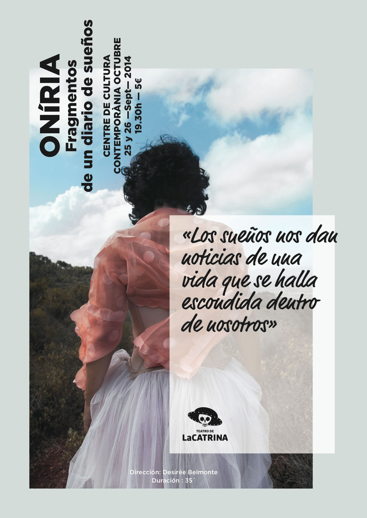 Tras varios años de investigación en los que incluye un viaje por Latinoamérica en busca de comunidades indígenas relacionadas con el mundo onírico, Desirée Belmonte, actriz e investigadora de nuevos lenguajes escénicos asociados al teatro documental autobiográfico, crea “Oníria”.